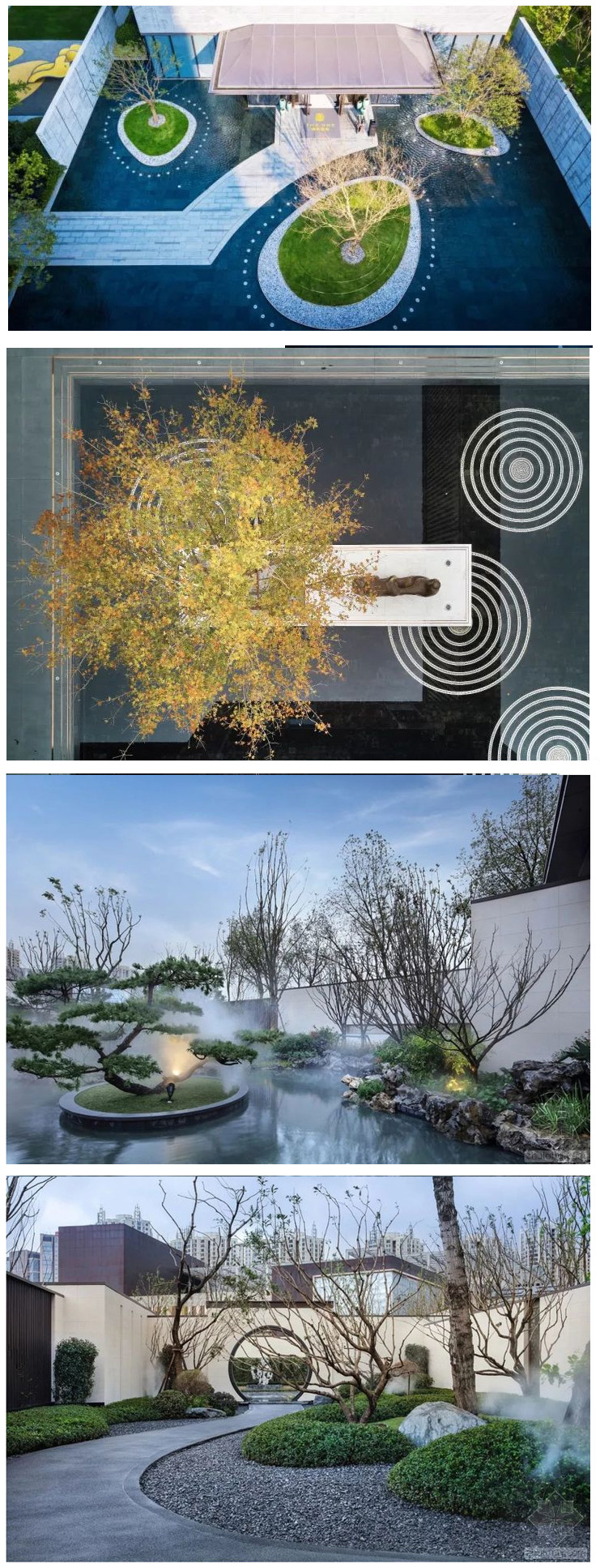 | 樹池承擔(dān)著保護(hù)植物的功能,也可以變成一種視覺的焦點(diǎn)。它不但能作為單獨(dú)的造景出現(xiàn),也能與坐凳、水體、鋪裝等相互結(jié)合形成特色景觀。設(shè)計(jì)巧妙的樹池起著塑造園林景觀特色、彰顯環(huán)境氛圍的重要作用。盛行于新中式樹池設(shè)計(jì),雖有似曾相似,但又給人一種更具現(xiàn)代感的畫面,極具構(gòu)成感。 |