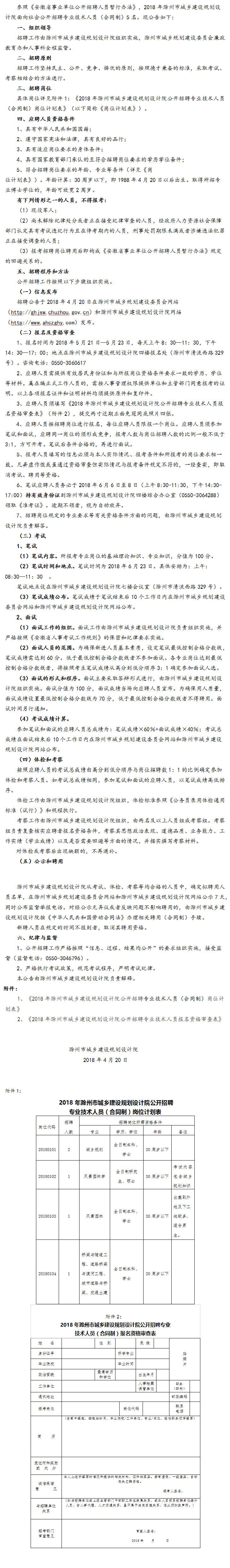 2018年滁州市城鄉(xiāng)建設規(guī)劃設計院公開招聘專業(yè)技術人員(合同制)公告
